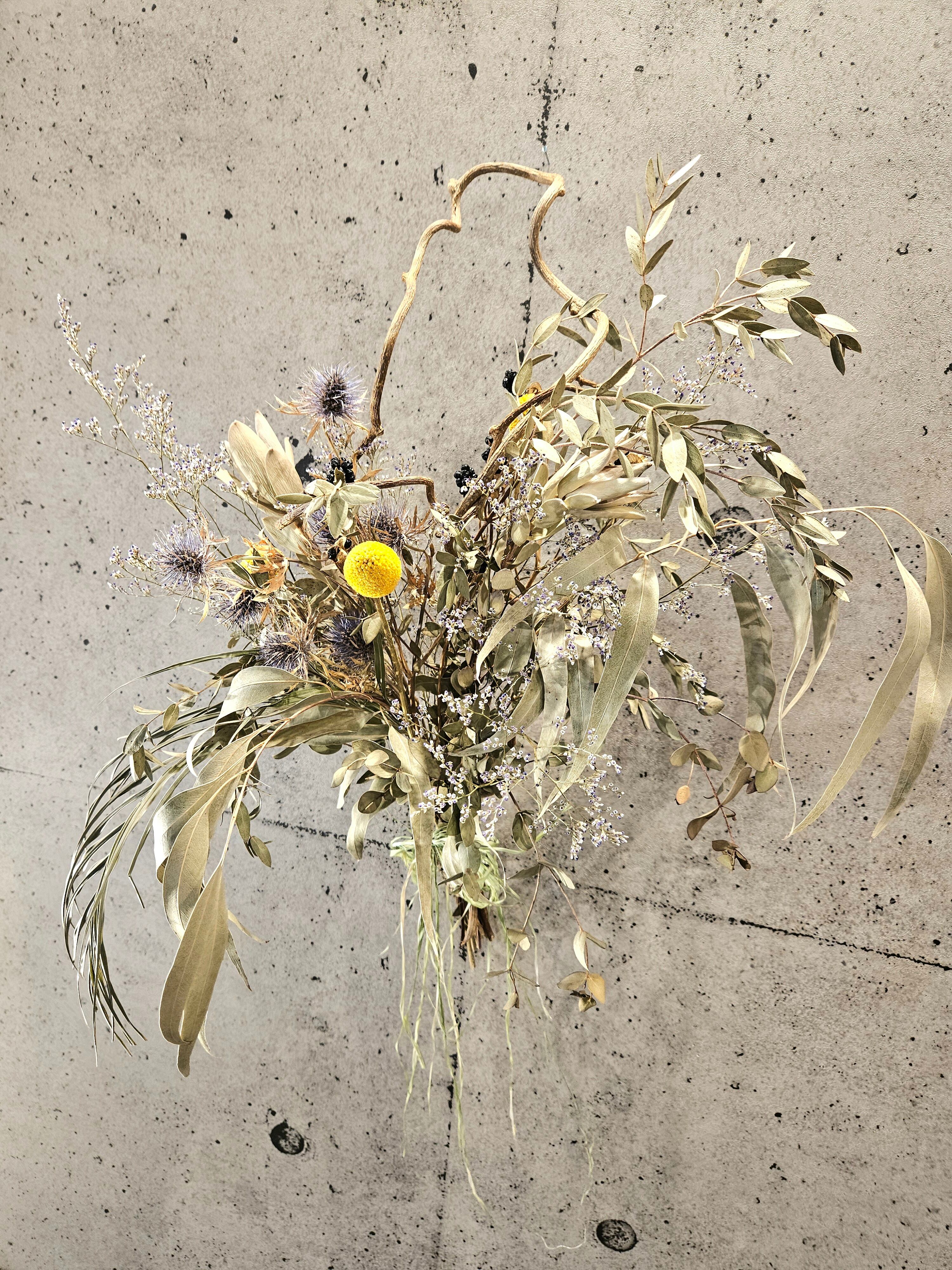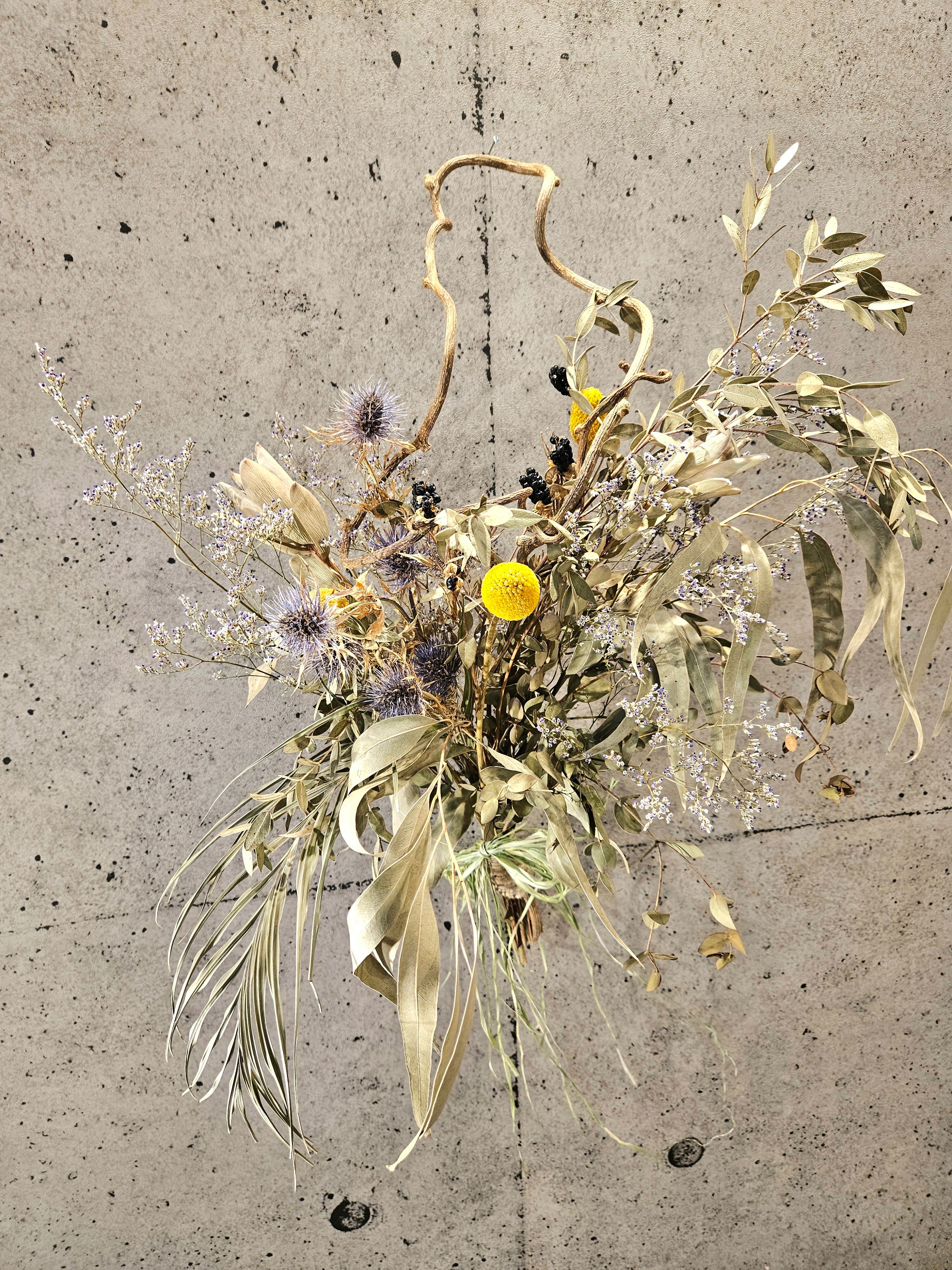 壁面を飾るドライフラワーのオブジェをイメージ致しました。