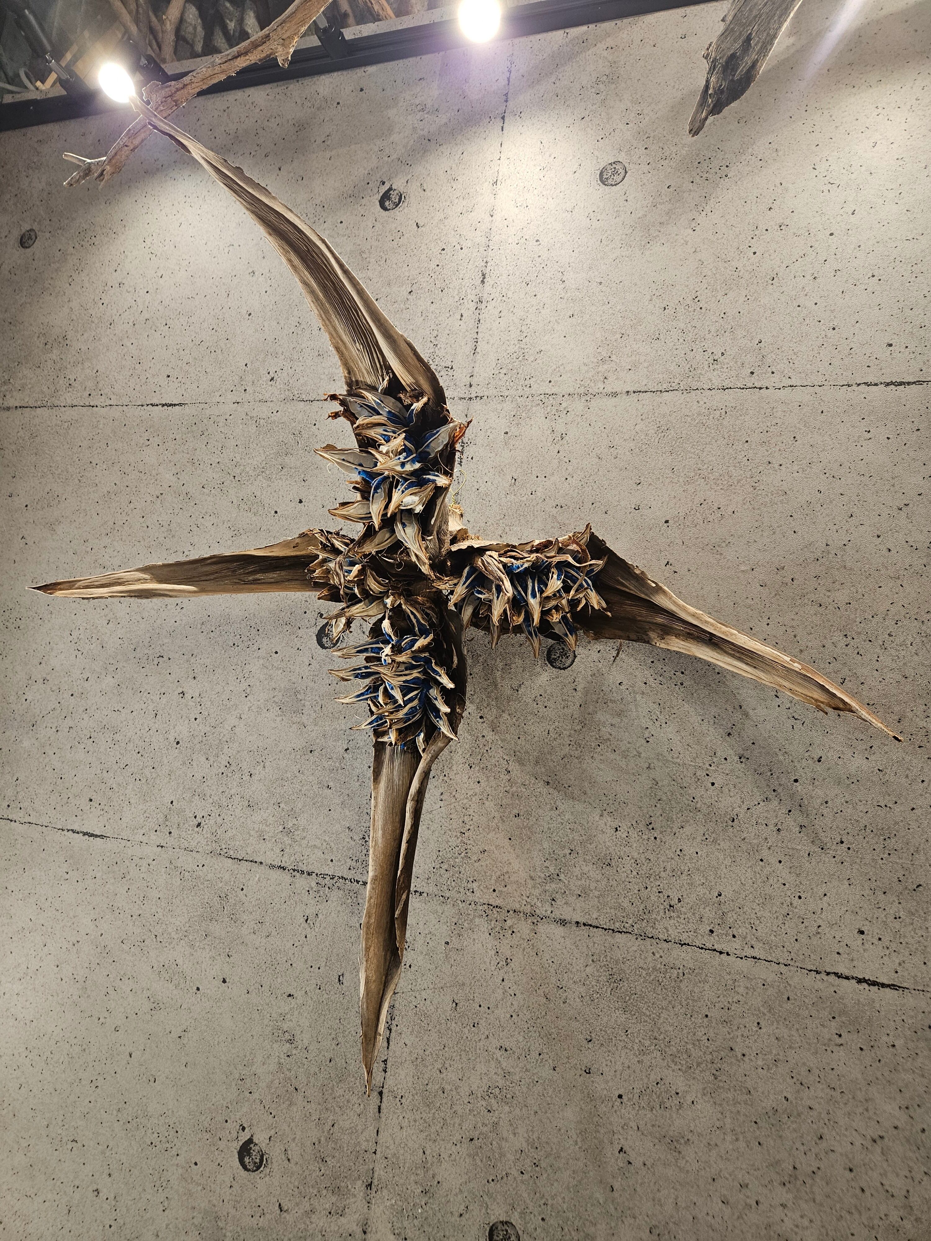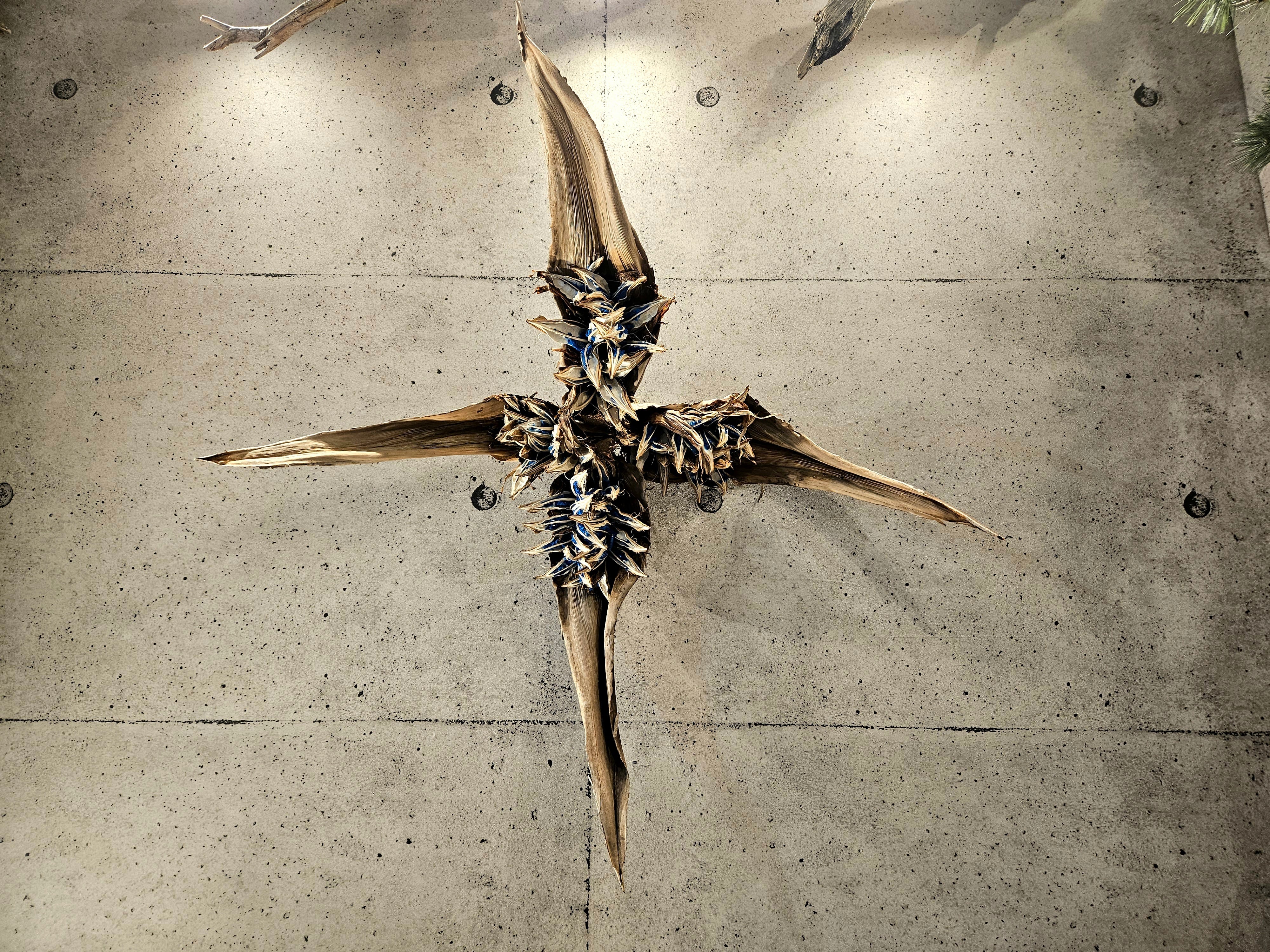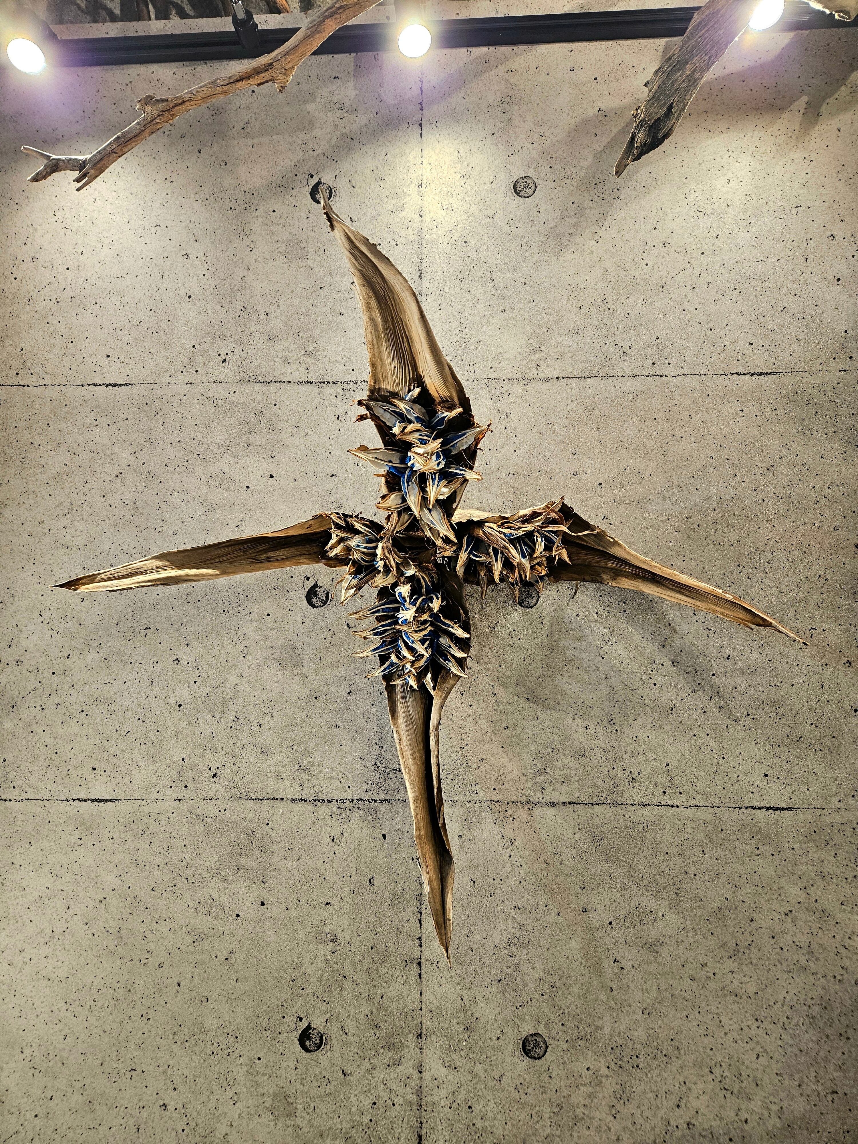 タビビトノキ(旅人の木)」のドライ実をクロス型をイメージして各固定した唯一無二のオブジェです。