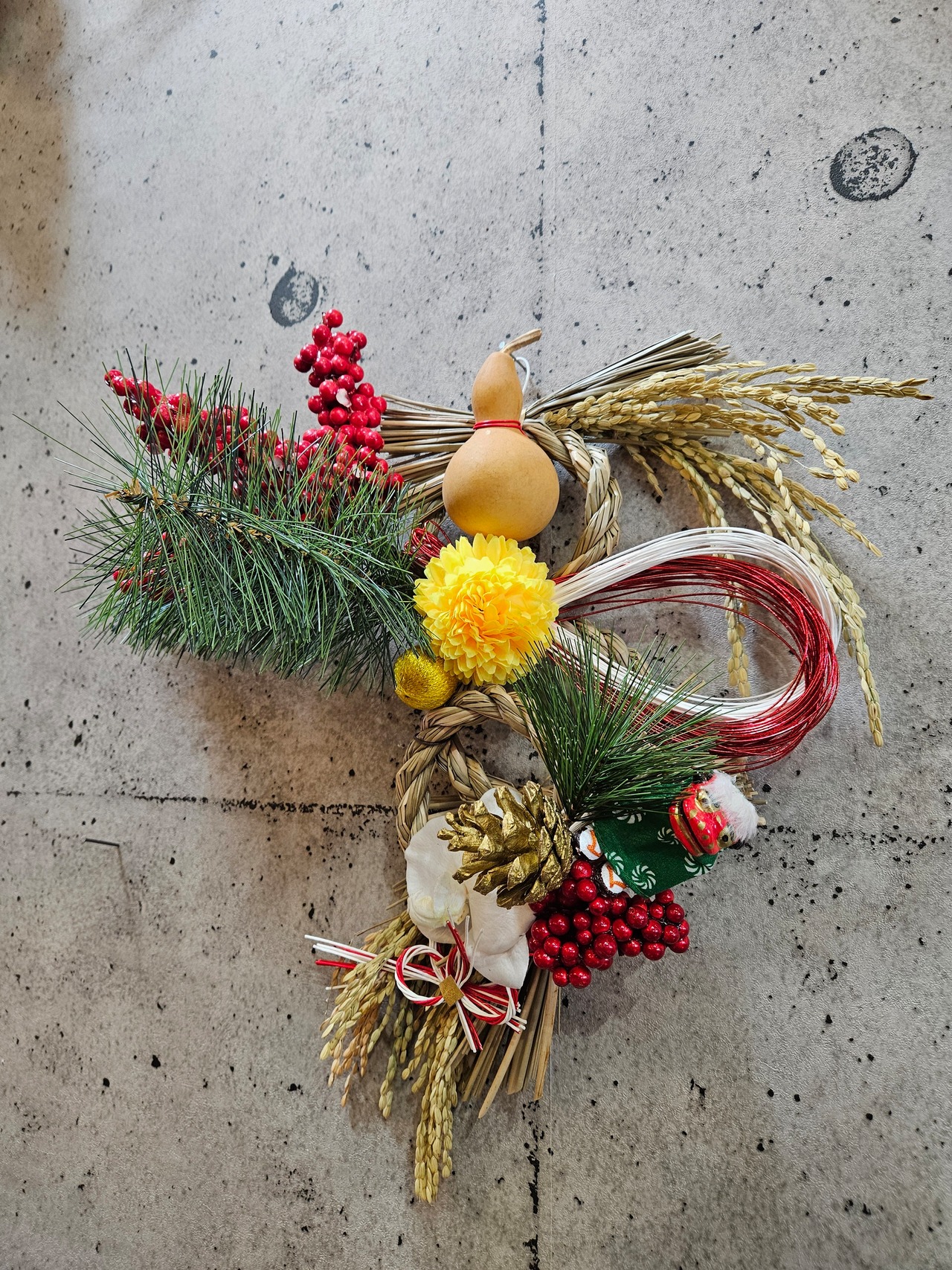 アーティフィシャルフラワー花材ーマツ、ナンテン、ポンポン菊、コチョウラン、獅子舞い等