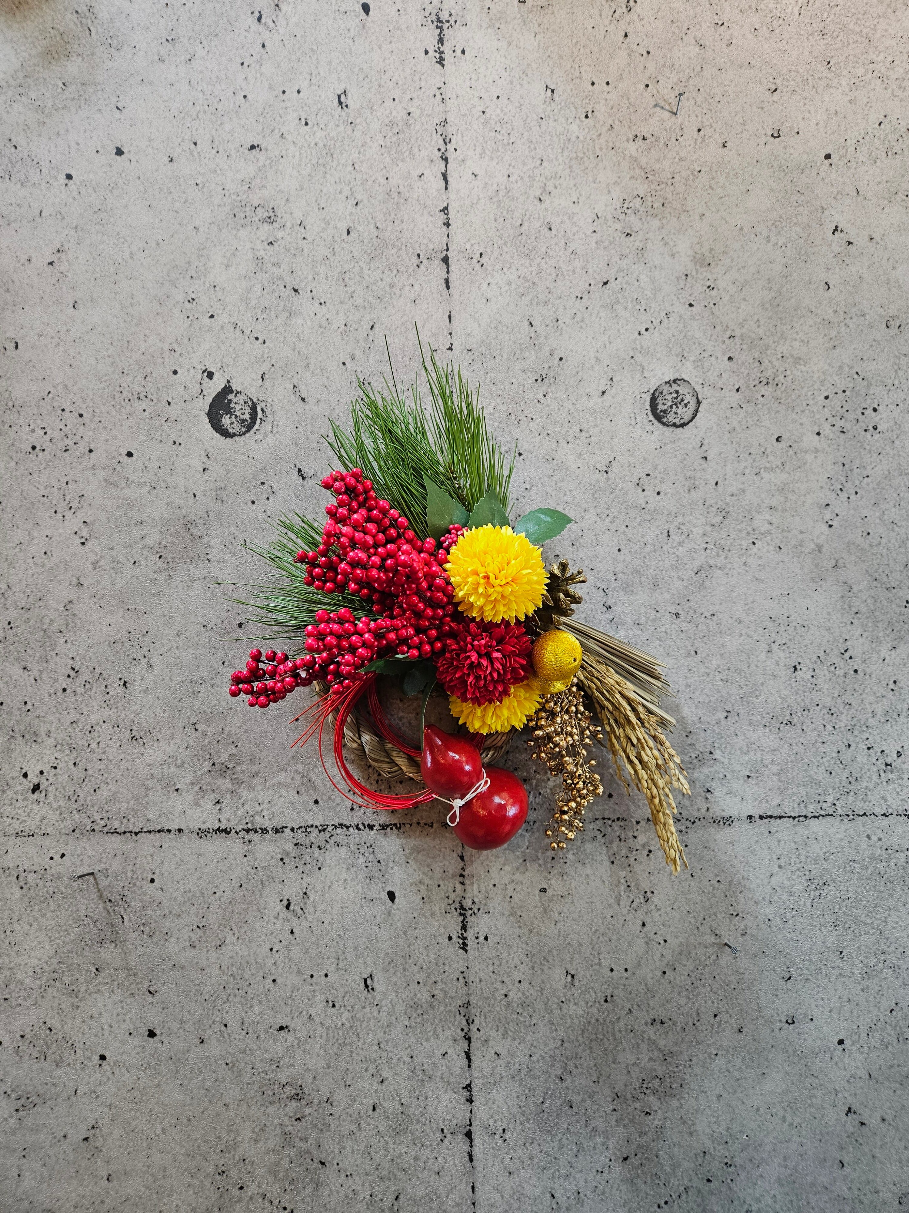 ※ひょうたん、松ぼっくり、ペッパーベリーの実は本物です