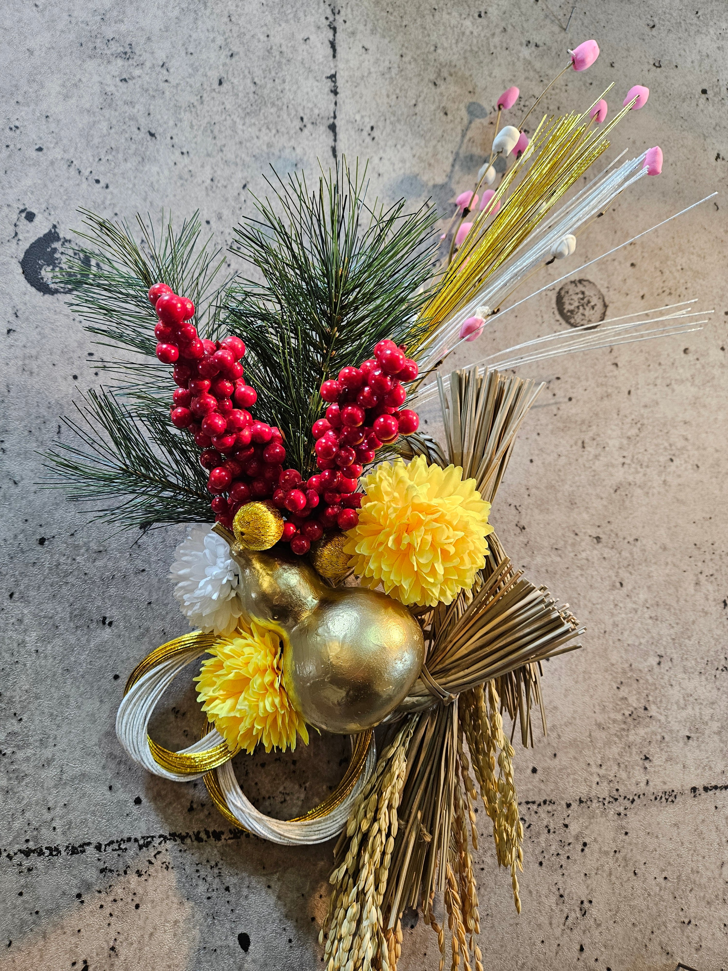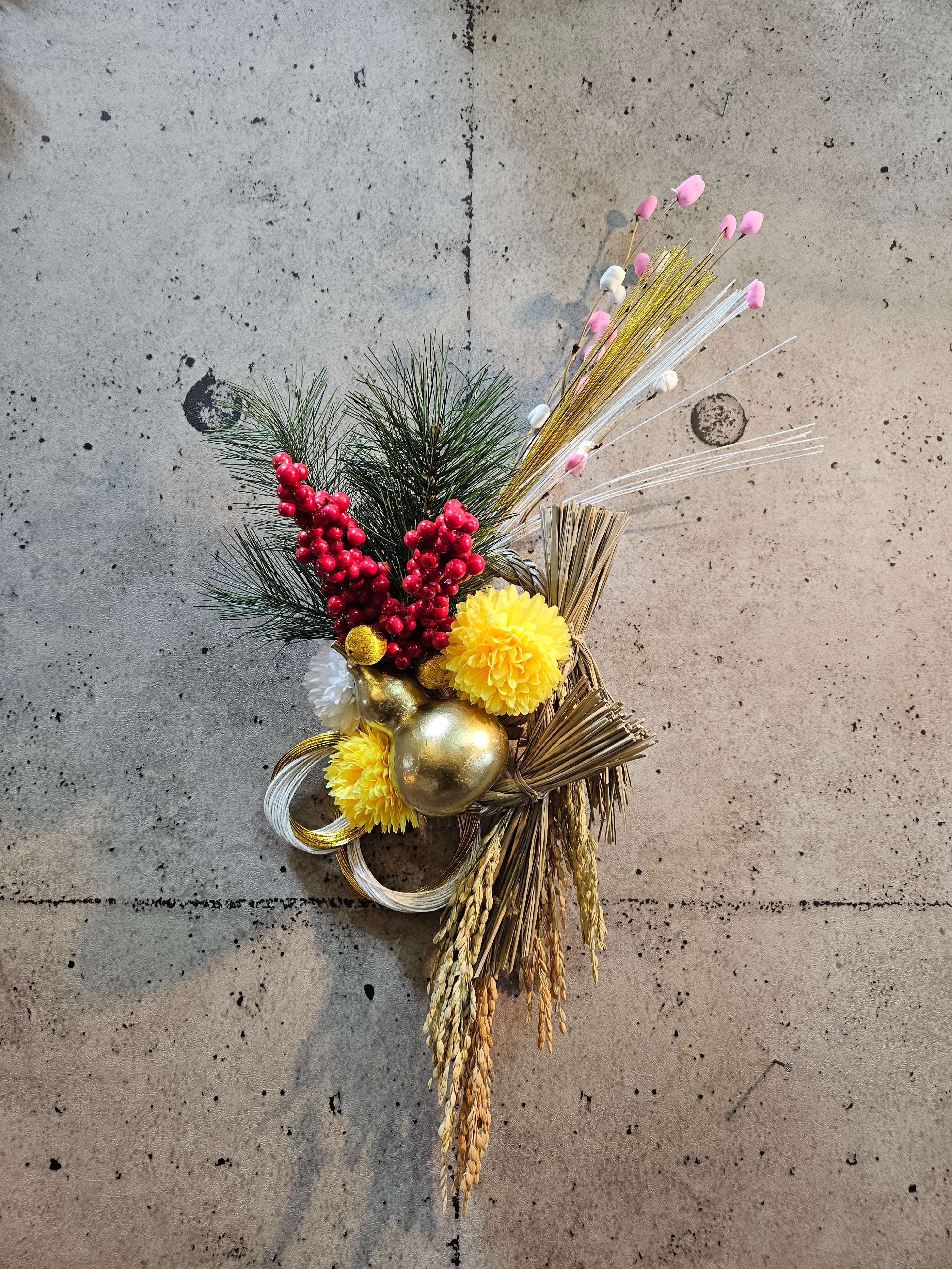 アーティフィシャルフラワー花材ーマツ、ナンテン、ポンポン菊、餅花等