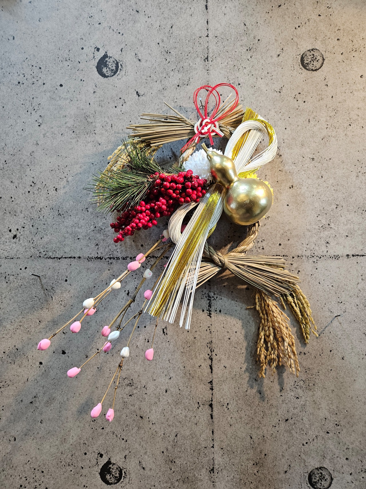 アーティフィシャルフラワー花材ーマツ、ナンテン、ポンポン菊、餅花等