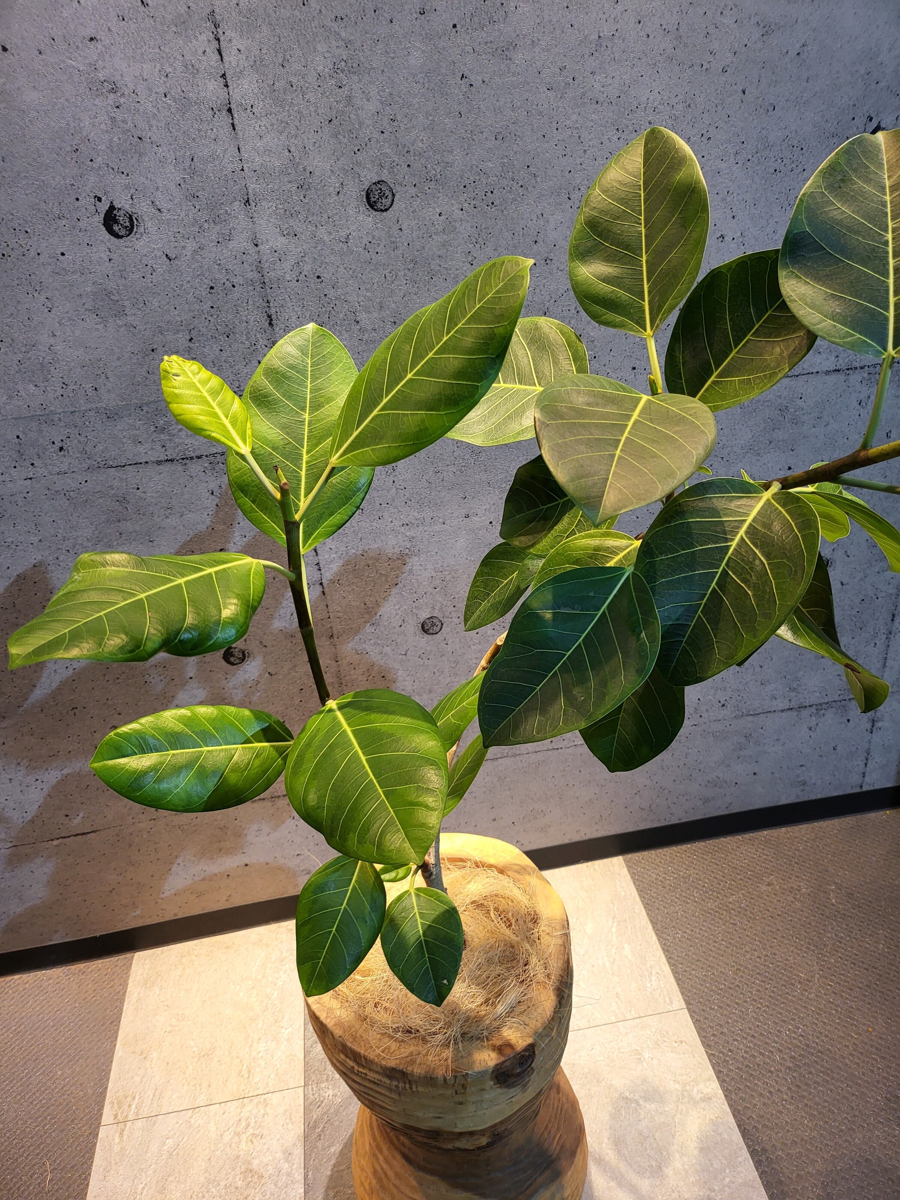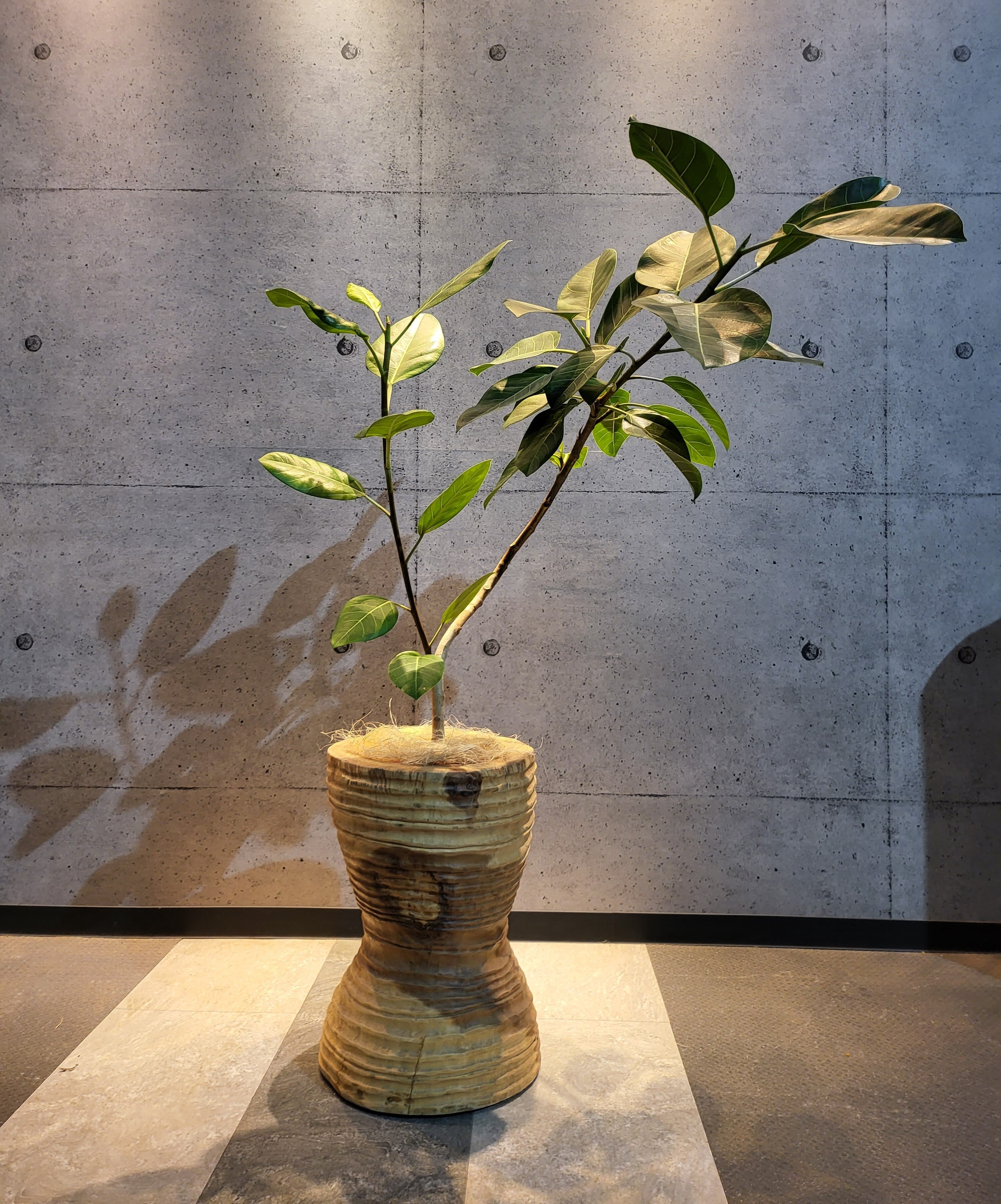 インドアグリーン ベンガレンシス (鉢込み)は、ゴムノキのベンガレンシスとナチュラルティストのウッドPOTを組み合わせた、存在感と温かみを兼ね備えた観葉植物です。