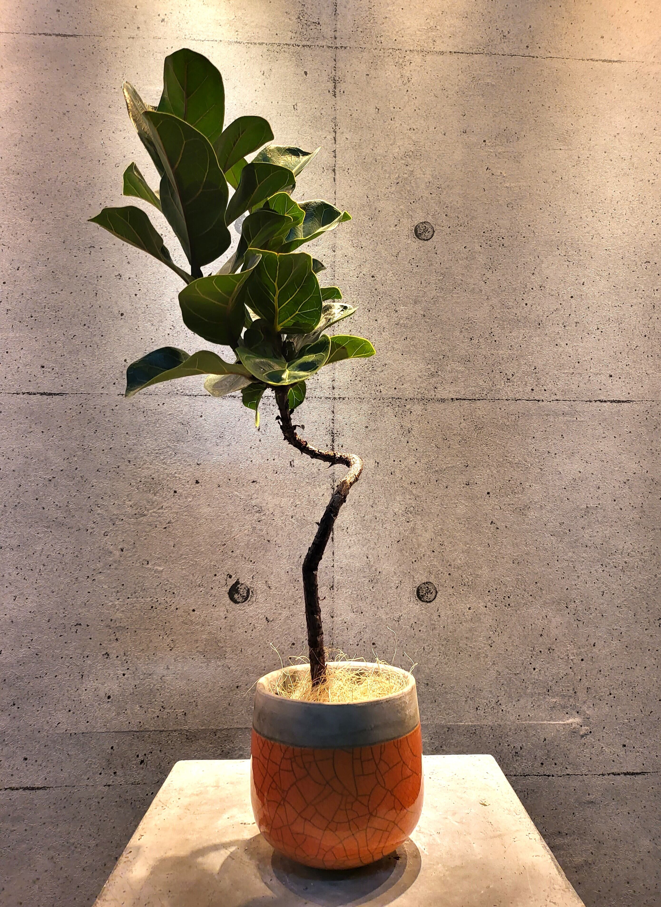 正確にはフィカス・リラータ バンビーノといいます。「バンビーノ」はイタリア語で赤ちゃんという意味があり、カシワバゴムをコンパクトにした小さいタイプの品種です。元々あまり生産されていない希少品種です。ダークグリーンの葉っぱがかわいらしくもシックな雰囲気を演出してくれます。