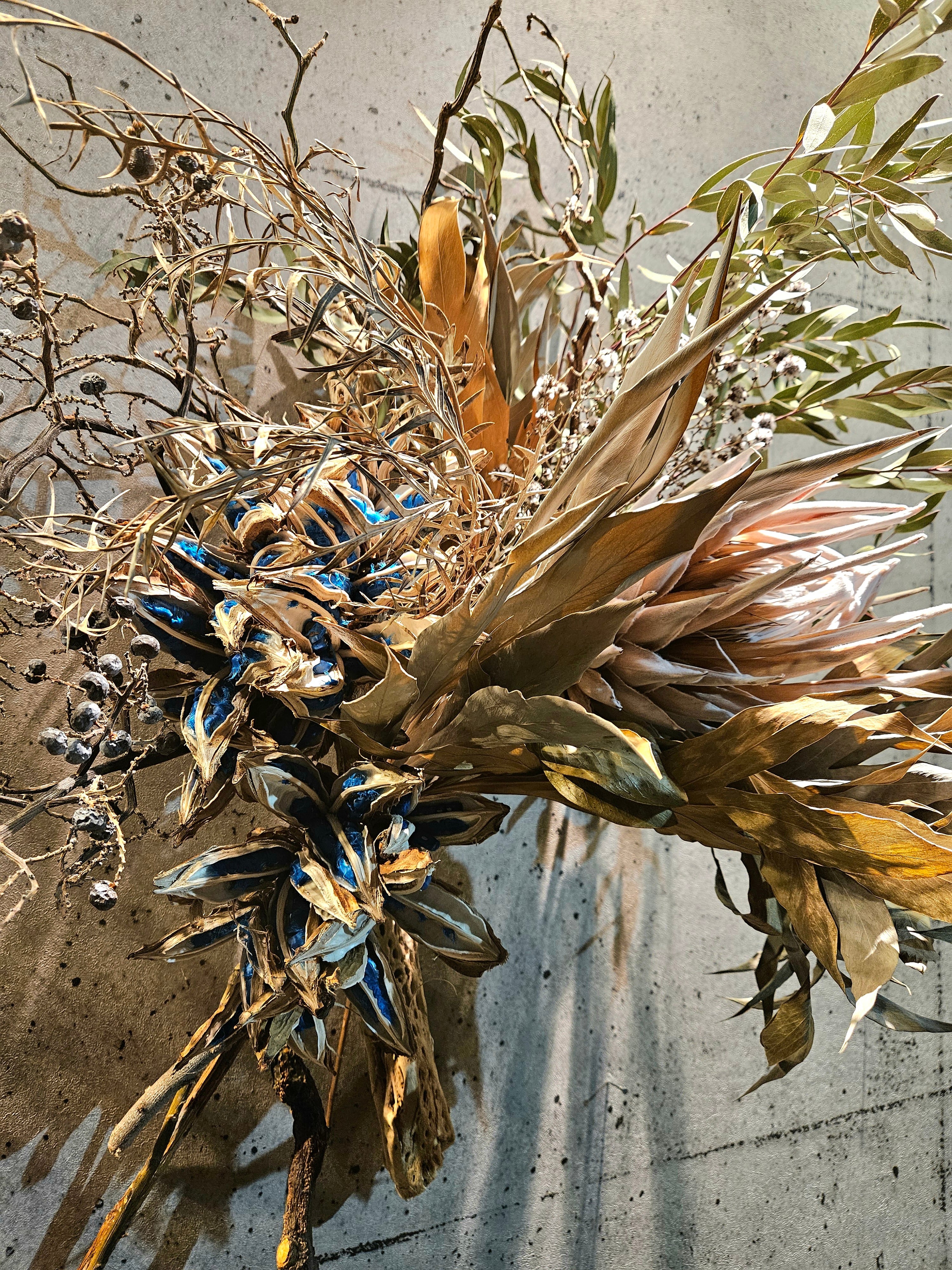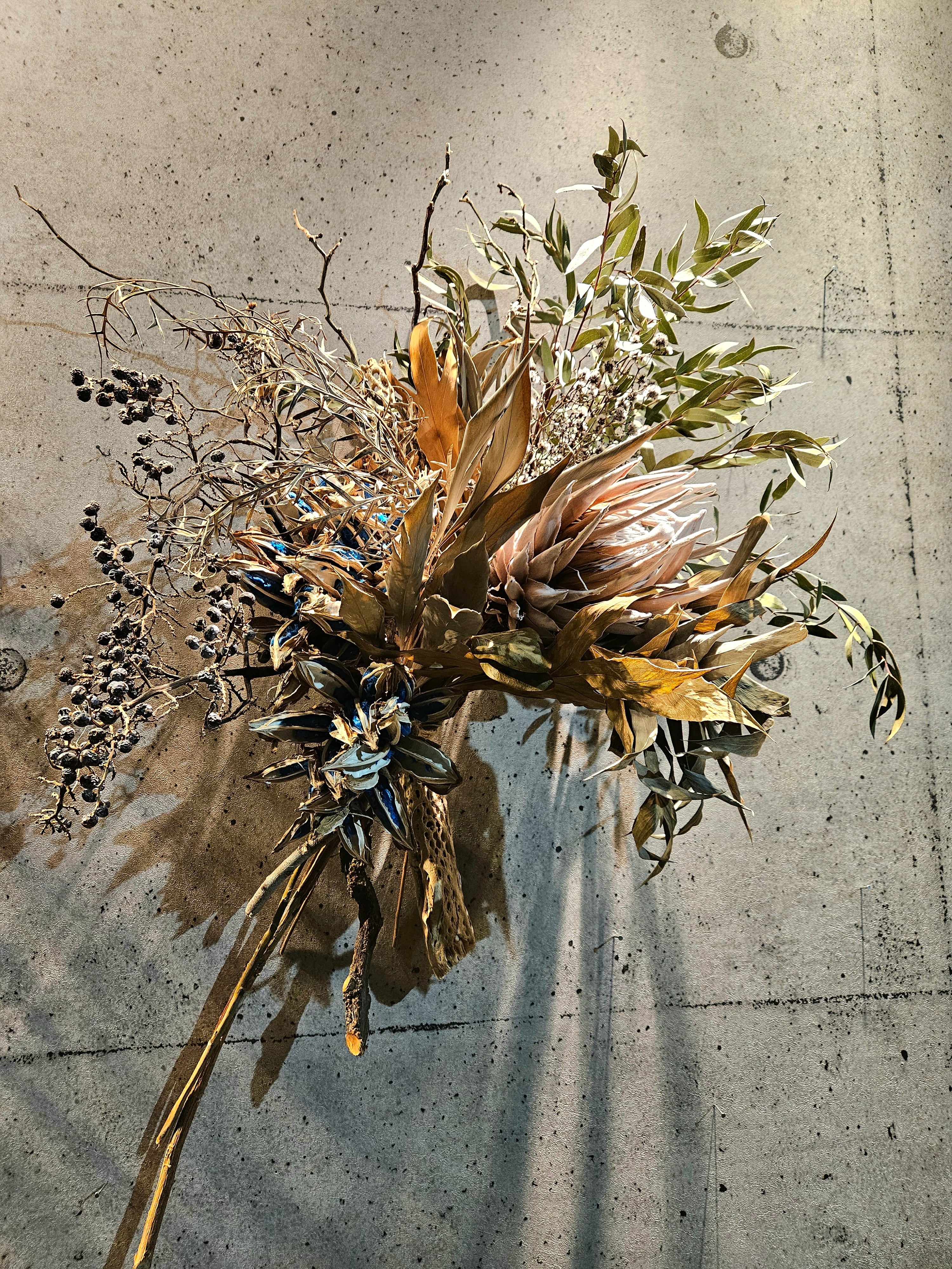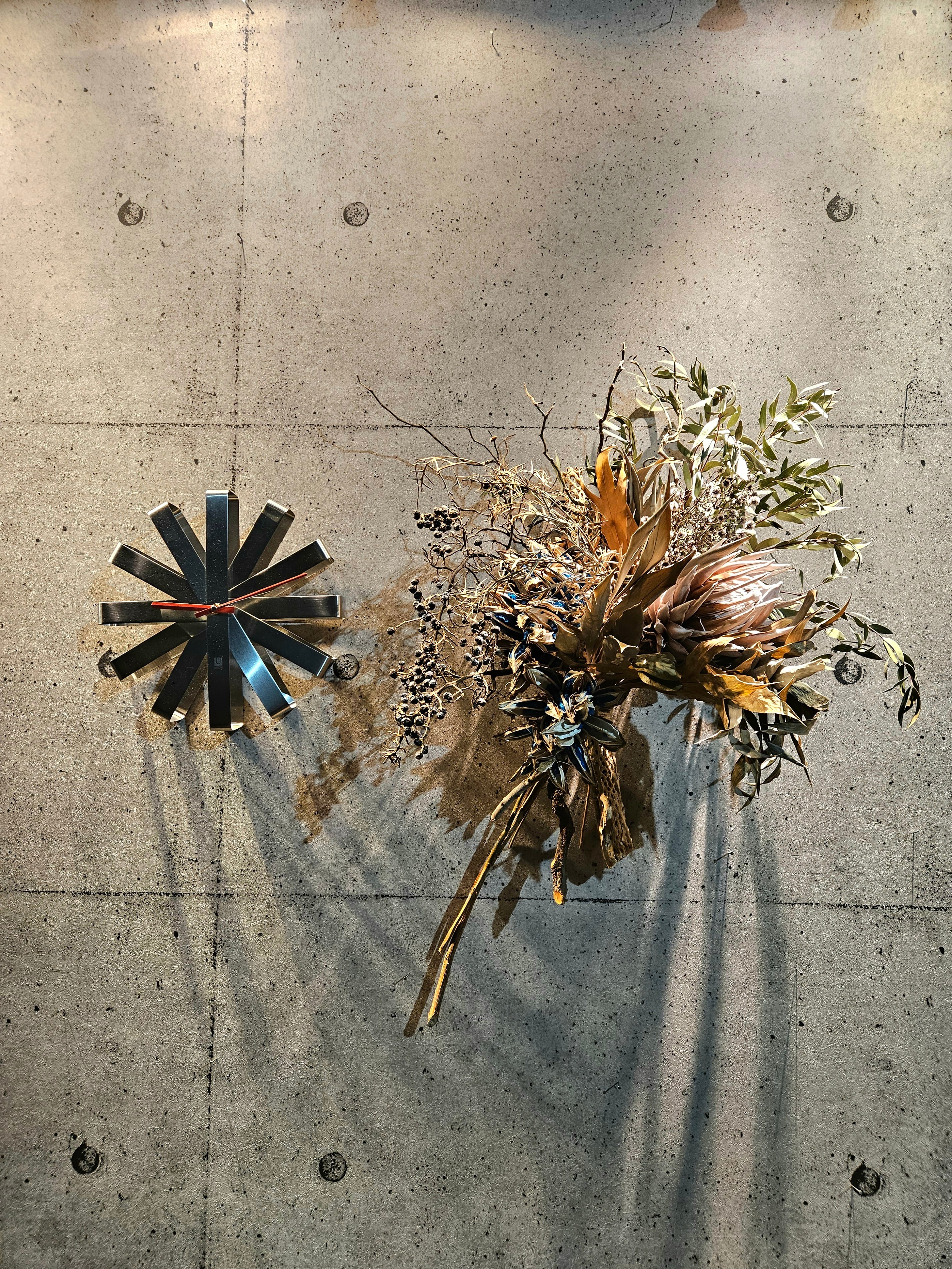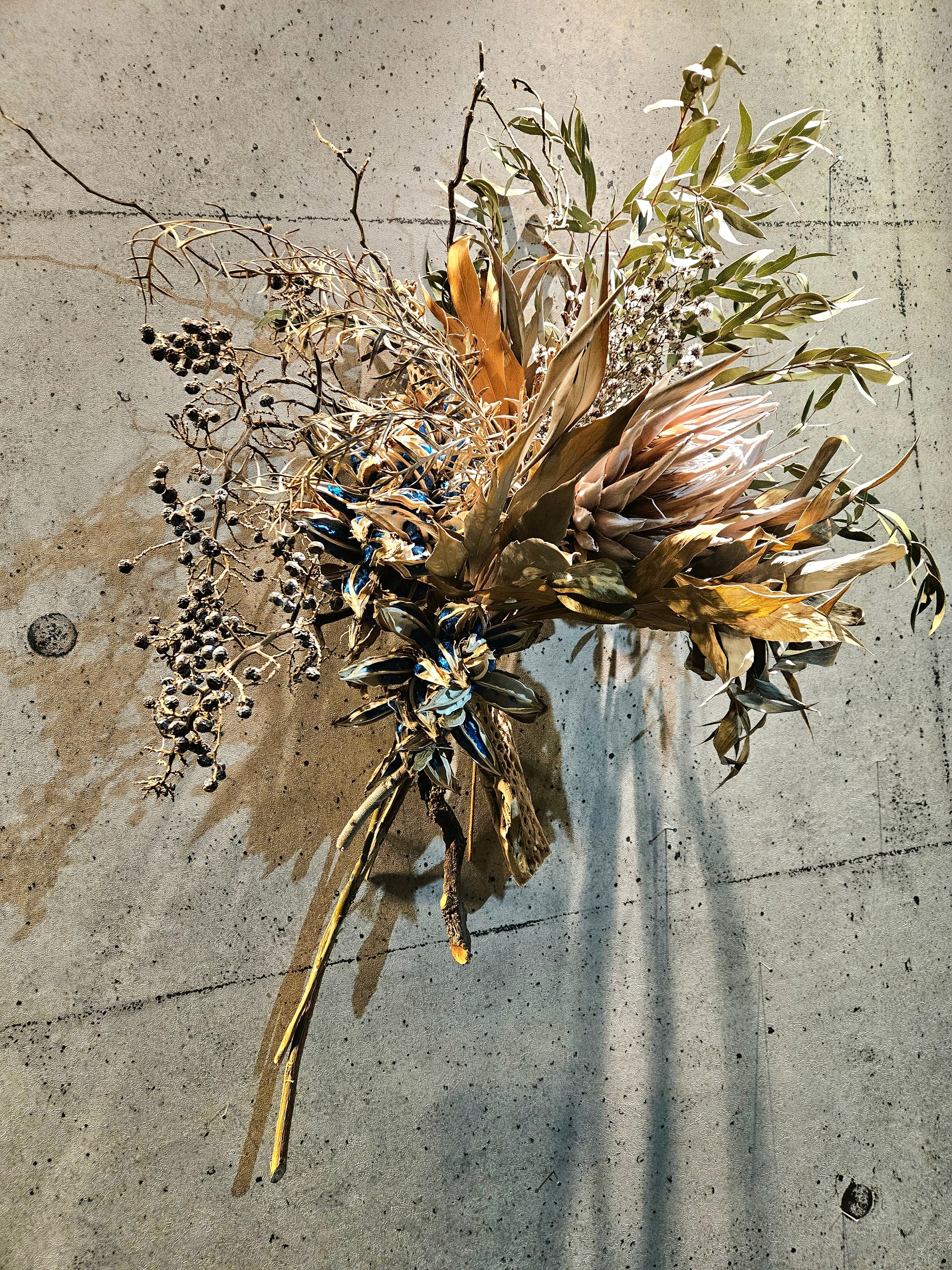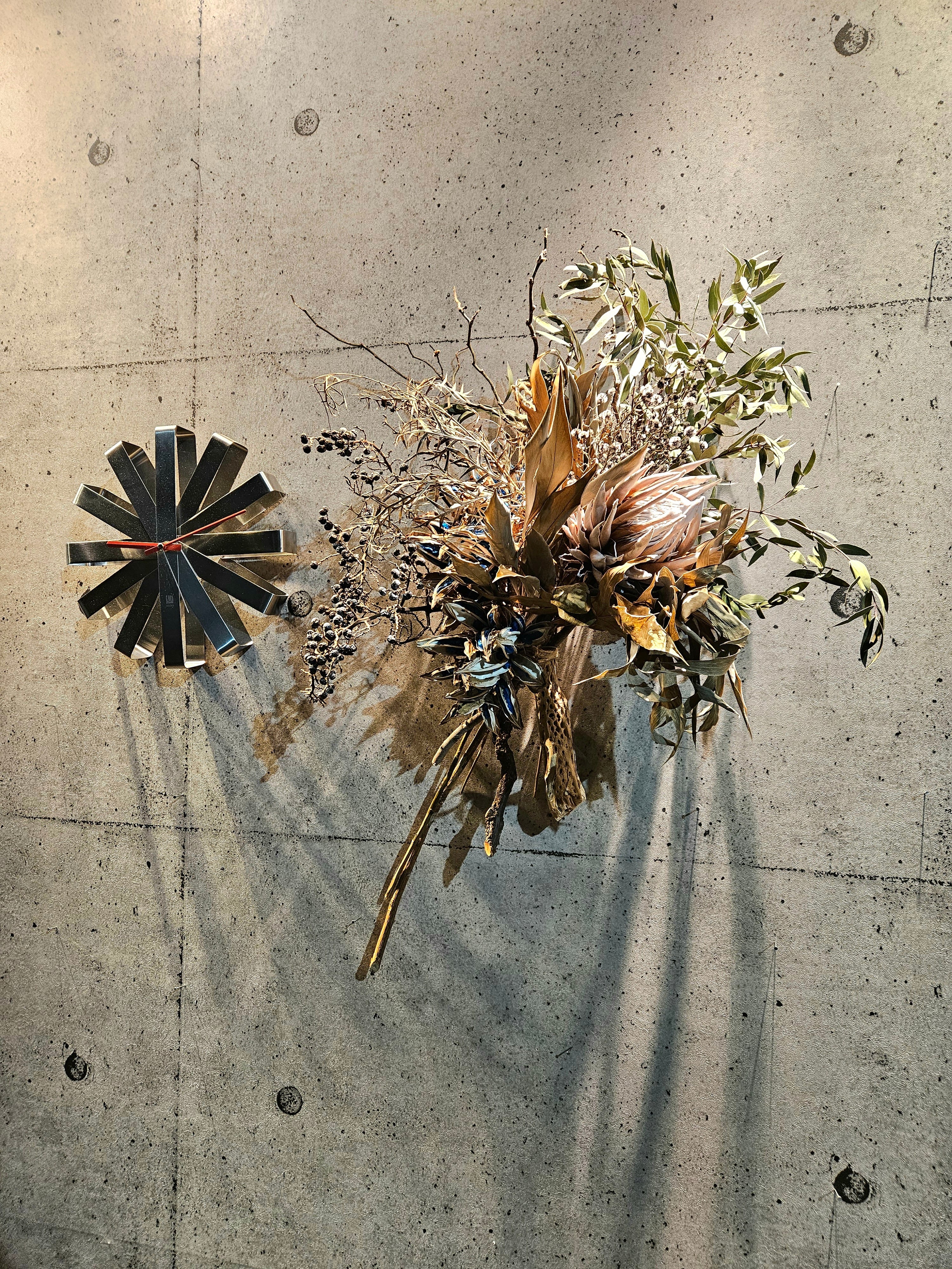 壁面を飾るドライフラワーのオブジェをイメージ致しました。