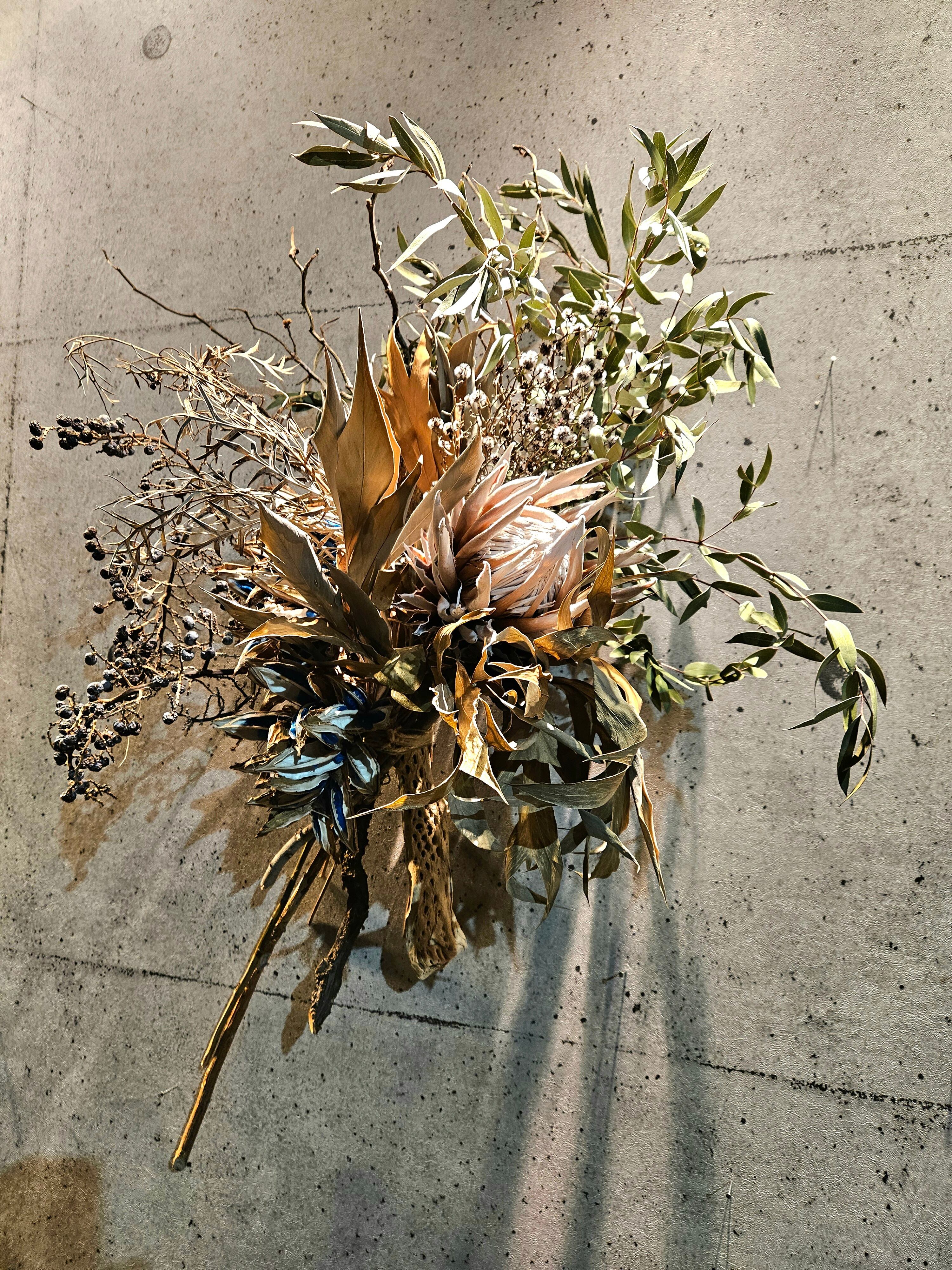 ※ドライフラワーの特性上、花々の状態が届いた際とは多少異なる場合がございます。また、直射日光や湿気の多い場所は避け、風通しの良い場所で楽しんでください。